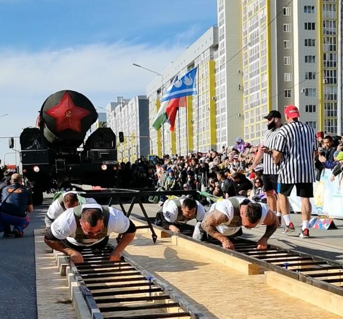 В Башкирии в Стерлитамаке установили мировой рекорд по буксировке комплекса «Тополь М». Его осуществила команда Эльбруса Нигматуллина, многократного обладателя титула «Самый сильный человек России». В состав группы вошли Денис Вагапов, Раиль Бикмаев, Айдар Байчурин и Руслан «Ягуар» Садыков. Об этом сообщили в администрации Стерлитамака.