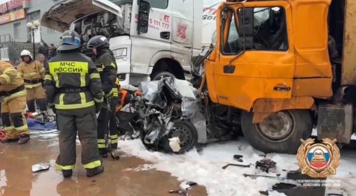 «МБ» писал, что массовое ДТП произошло сегодня в Уфе утром. Погибли два человека — легковушка, в которой они находились, оказалась буквально грудой металла. Также пострадавшими признаны восемь человек. По предварительным данным, у грузовика отказали тормоза.