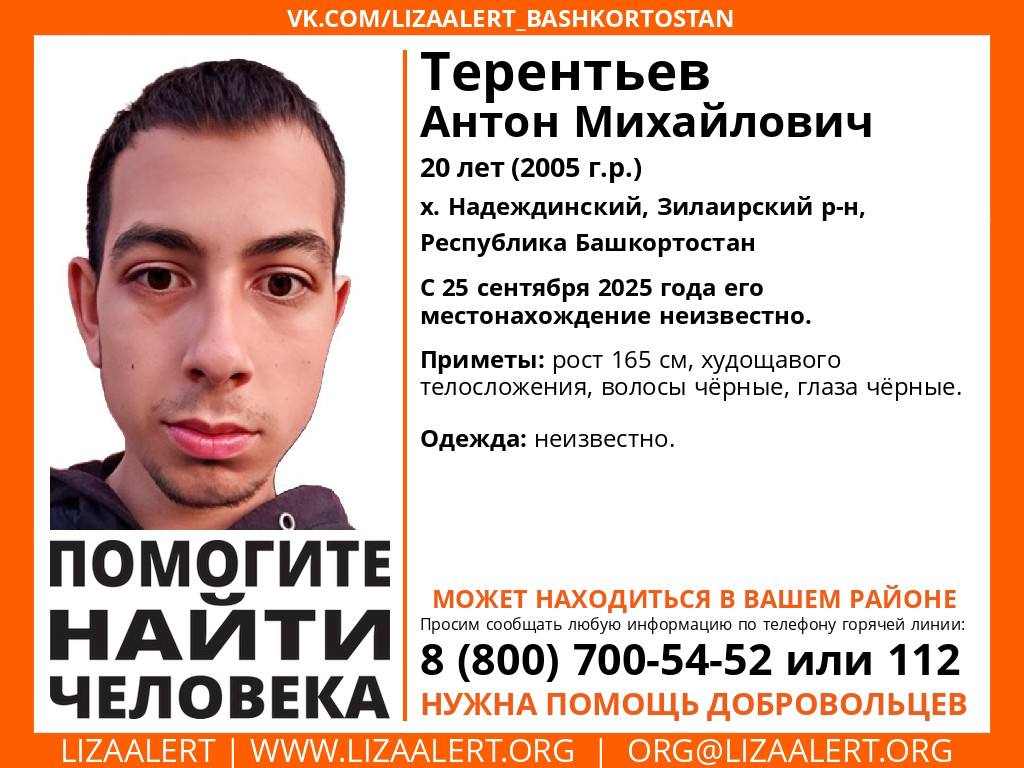 20-летнего сельчанина ищут с сентября в Башкирии. Как сообщает «ЛизаАлерт», с 25 сентября нет известий о жителе хутора Надеждинский Зилаирского района Антоне Терентьеве.