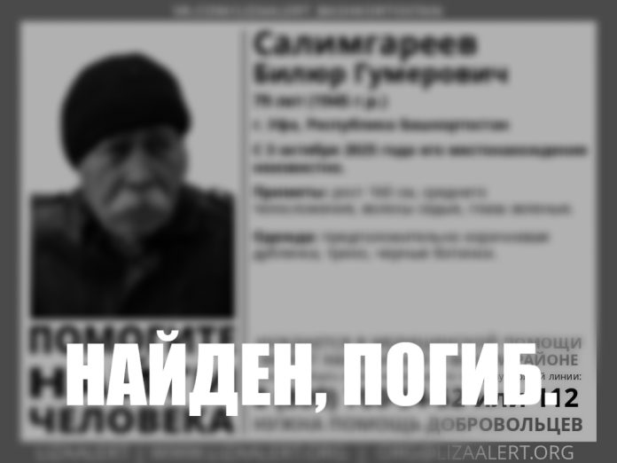 Пропавшего в начале октября уфимца нашли мертвым. О трагическом завершении поисков 79-летнего Билюра Салимгареева сообщили волонтеры «ЛизаАлерт».